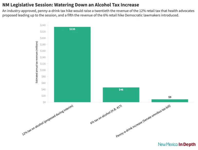 The penny-a-drink increase in the tax package originated in a bill co-sponsored by minority leader William Sharer, R-San Juan, and Debbie O’Malley, D-Albuquerque. Both their offices confirmed it was viewed as friendly by the alcohol industry.