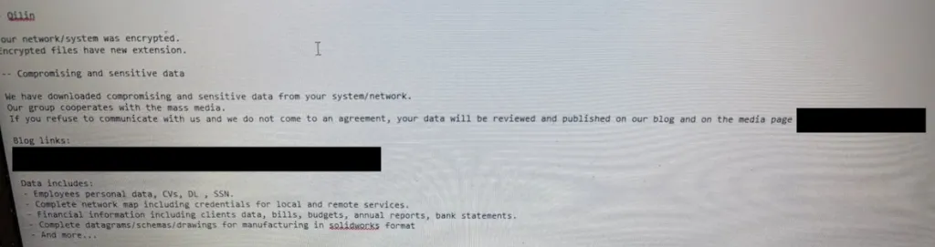 In an image shared with Searchlight, one employee’s laptop screen displayed the same threatening ransomware message whenever they attempted to open a file on their work computer. The message was signed “Qilin,” and its contents bear the hallmark signs of ransomware, in which hackers hold sensitive data hostage until they receive a ransom payment. Even if they do receive a payment, groups like these may leak the sensitive information anyway.